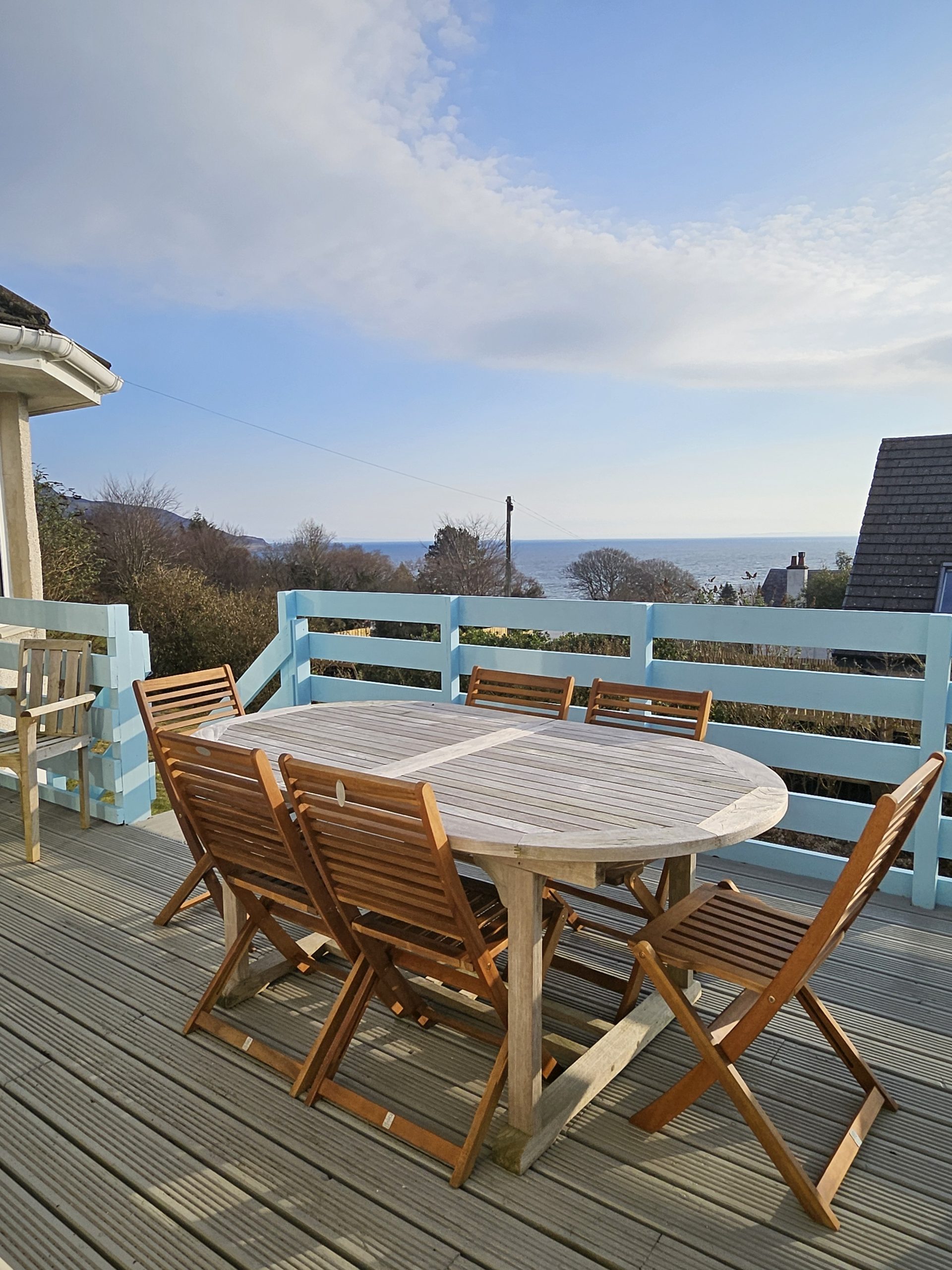 Clyde House in Whiting Bay is the perfect place to stay for relaxed family holidays on the Isle of Arran. The house provides lots of living space for 6 people including 3 bedrooms (2 king-sized beds and 2 single beds); en-suite and family bathroom; library /study; large, fully-equipped kitchen/diner; large sitting room with dining area and sun-room; 2 decking areas to the front and side.